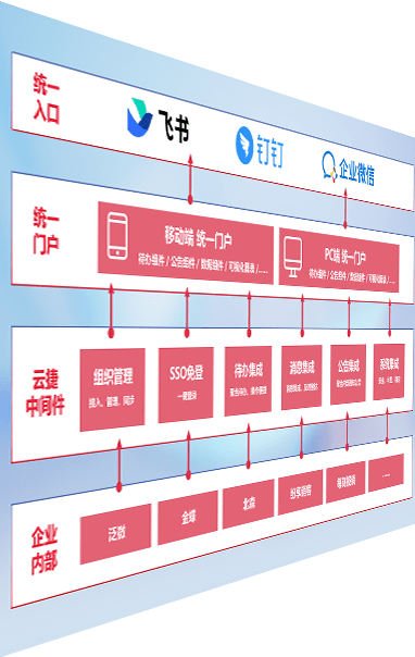 对协作平台提供支持服务,,支持企业应用与协作平台对接,,包含组织同步、、消息集成、、、待办集成等。。。支持目前主流的协作平台:钉钉、、企微和飞书。。。。